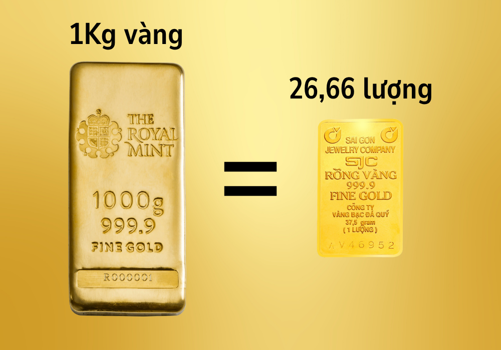 Khi nói đến vàng, nhiều người thường thắc mắc rằng 1kg vàng tương đương với bao nhiêu lượng. Theo tiêu chuẩn Việt Nam, 1kg vàng sẽ khoảng 26,67 lượng. Đây là con số giúp việc quy đổi dễ dàng trong giao dịch và mua bán. Cụ thể, 1kg vàng cũng tương đương với 266 chỉ vàng và khoảng 997,5 gam vàng nguyên chất.