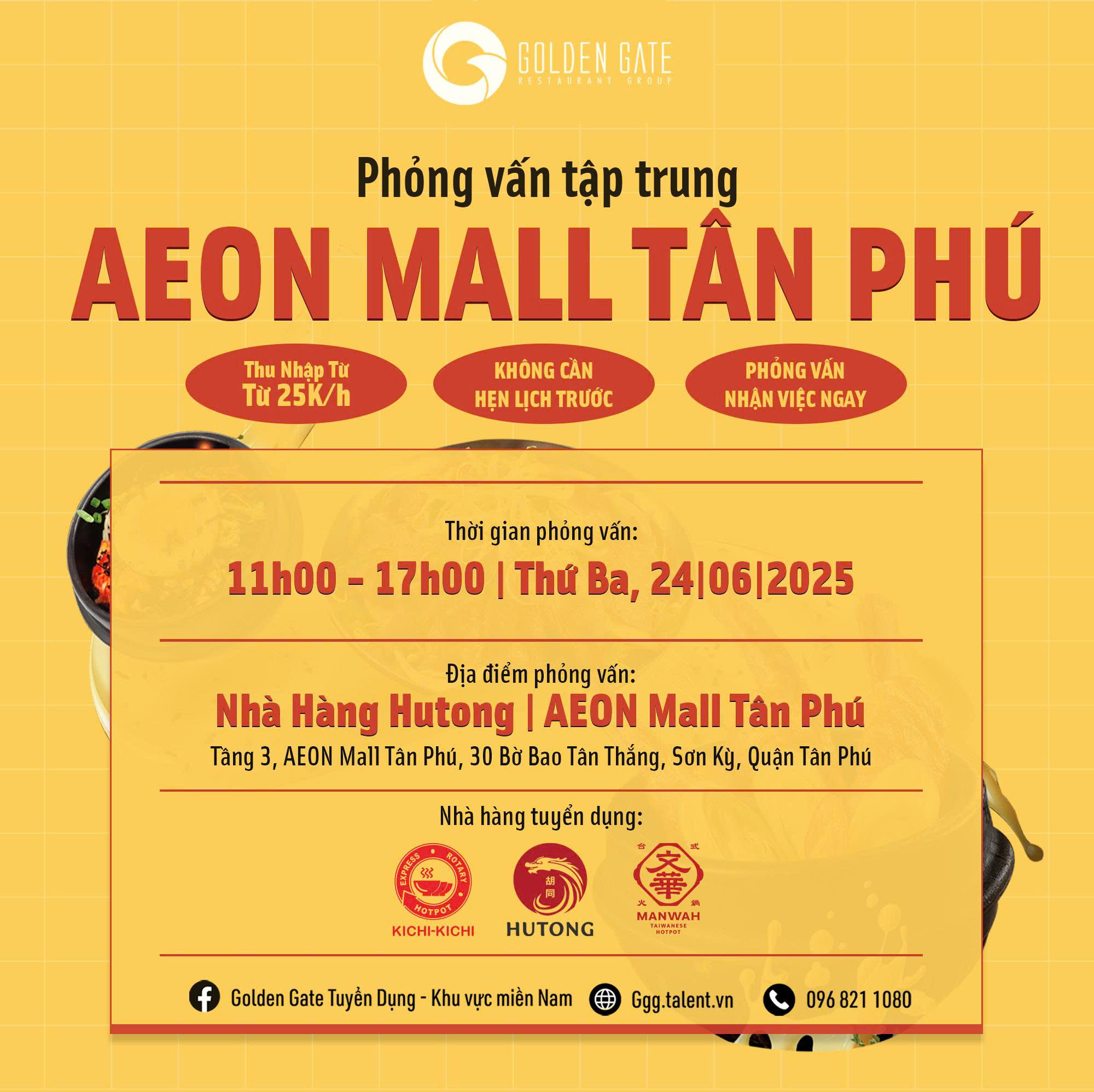 Aeon Mall Tân Phú hiện đang có nhiều cơ hội việc làm hấp dẫn cho những ai đang tìm kiếm một công việc bán thời gian hoặc toàn thời gian. Từ ngày 23/10/2025 đến 30/11/2025, nhiều vị trí đang được tuyển dụng, trong đó có các công việc tại nhà hàng Sushi Kei, hay các vị trí nhân viên bán hàng tại Thời Trang Aokang với mức thu nhập hấp dẫn từ 6 triệu đến 8 triệu đồng.