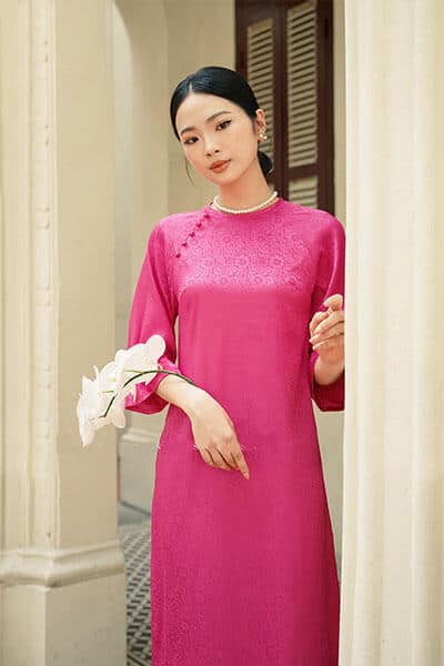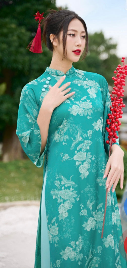 Áo dài gấm cách tân đang trở thành một lựa chọn phổ biến cho những dịp lễ hội hay sự kiện quan trọng. Với thiết kế tay bèo nữ tính, chiếc áo dài này mang đến vẻ đẹp duyên dáng và thướt tha cho người mặc. Chất liệu gấm dày dặn không chỉ tạo nên sự sang trọng mà còn giúp che đi các khuyết điểm của cơ thể, đem lại sự tự tin cho các cô gái.