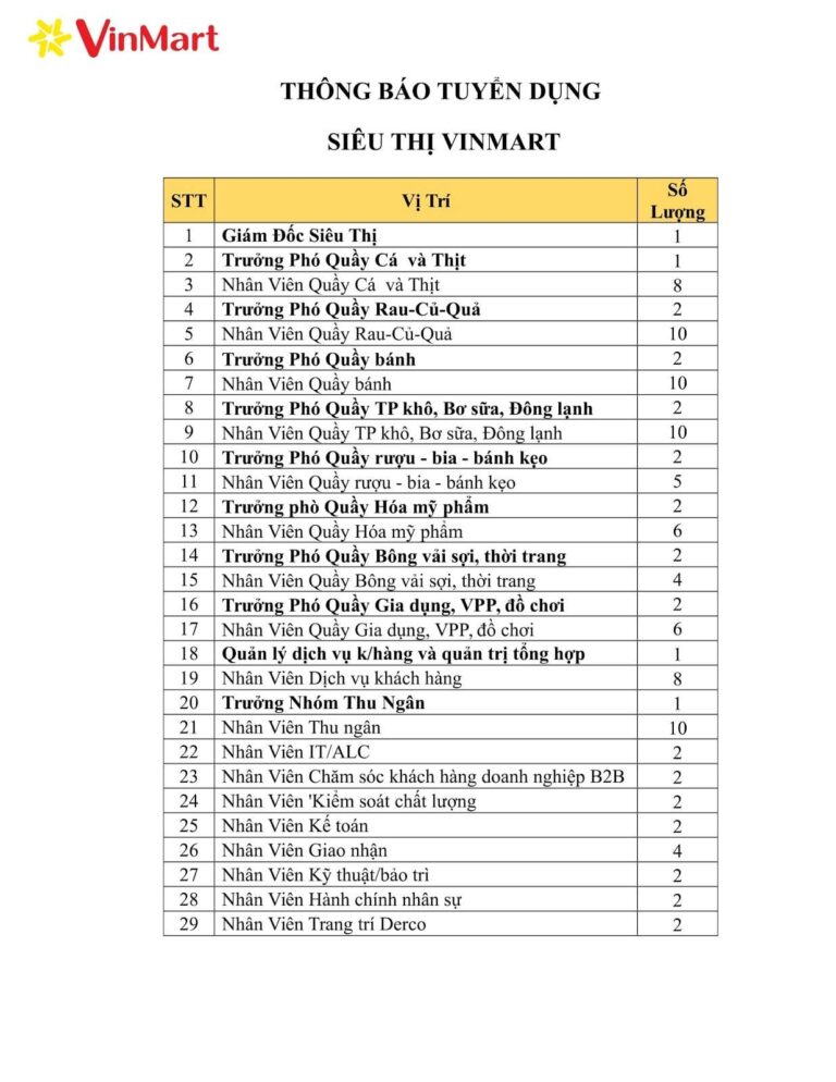 Bạn đang tìm kiếm một công việc ổn định tại Phú Yên? Vinmart Phú Yên hiện đang triển khai chương trình tuyển dụng với nhiều vị trí hấp dẫn, phù hợp cho cả lao động phổ thông lẫn các ứng…