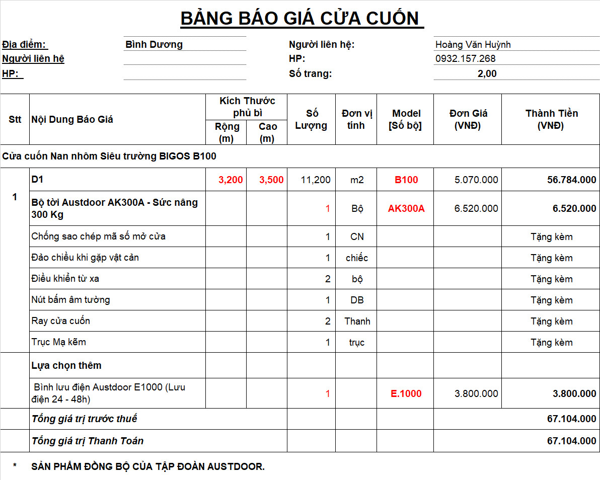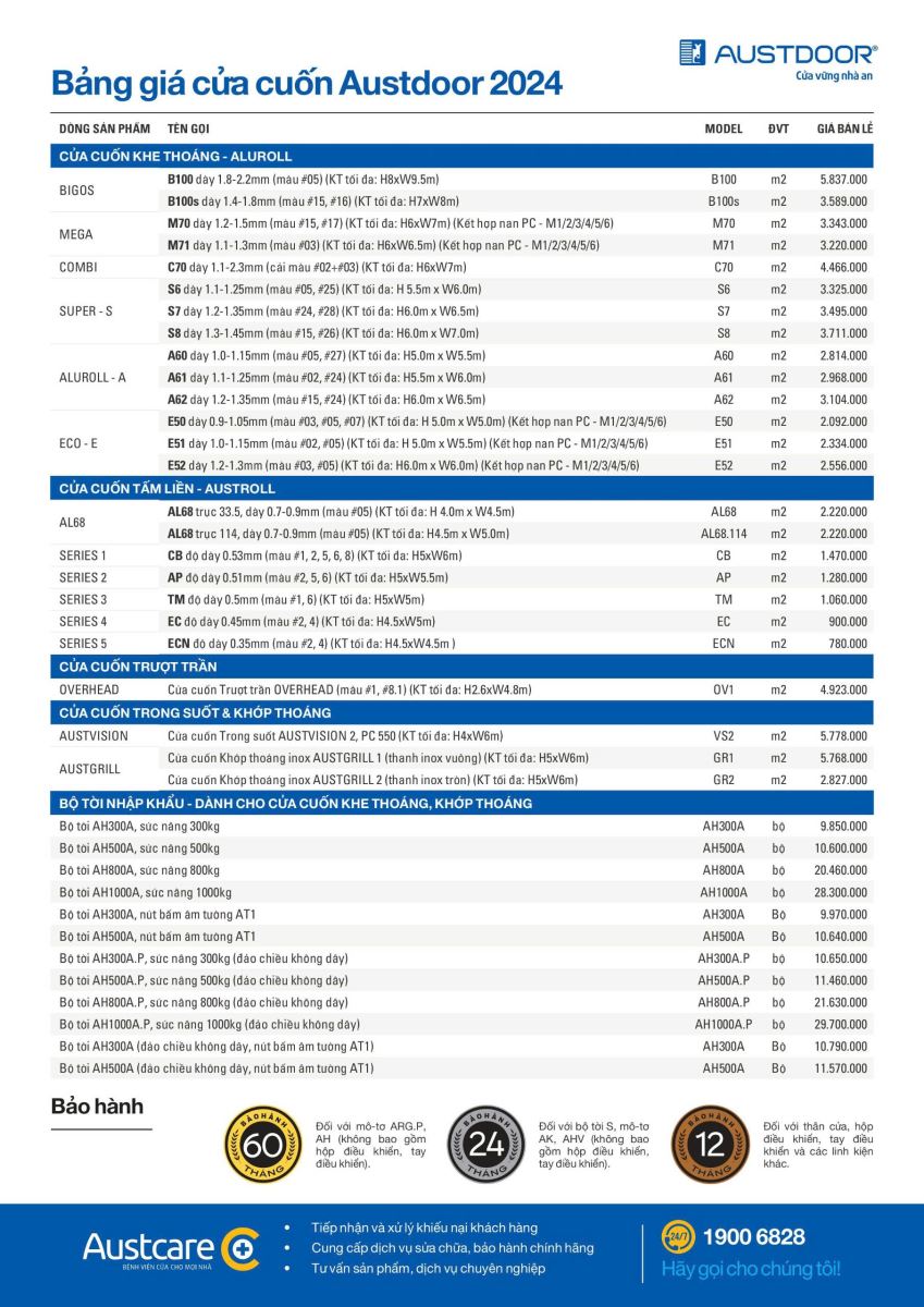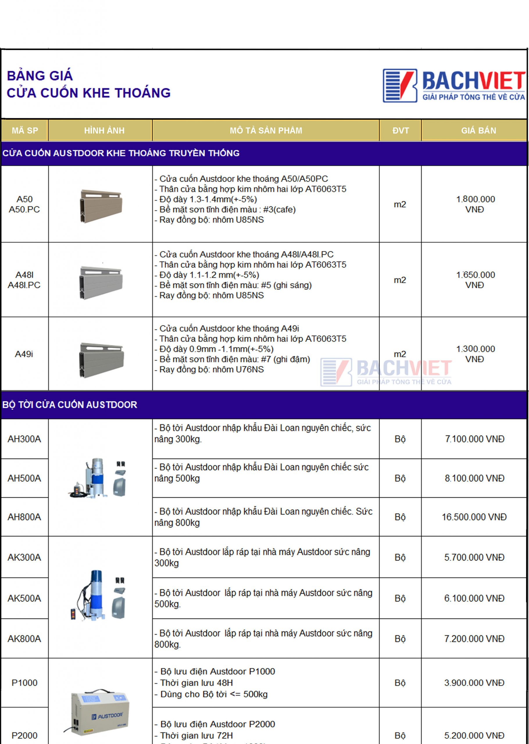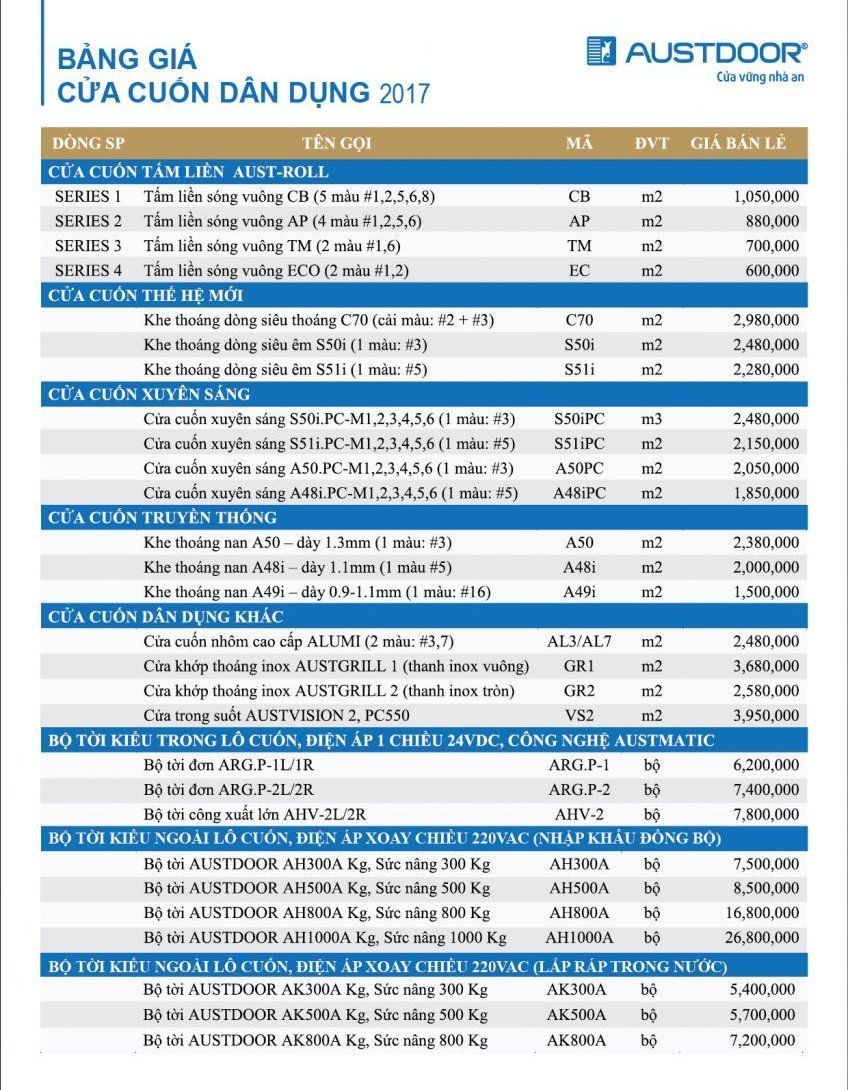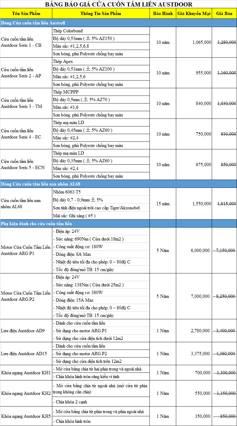 Bảng giá cửa cuốn chất lượng thương hiệu Austdoor
