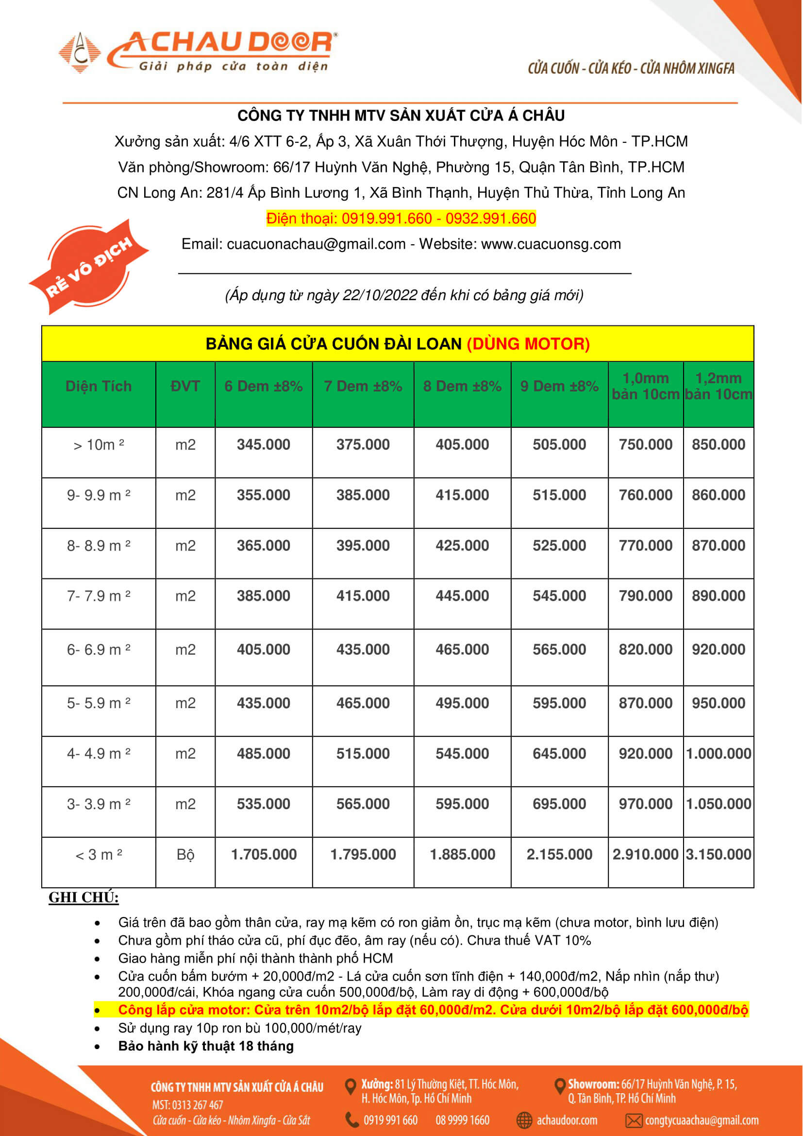 Việc lựa chọn cửa cuốn không chỉ dựa vào giá mà còn cần cân nhắc về độ bền, mẫu mã và dịch vụ bảo hành. Nên liên hệ trực tiếp với nhà cung cấp để được tư vấn kỹ và nhận báo giá chi tiết phù hợp với nhu cầu cụ thể của mình.