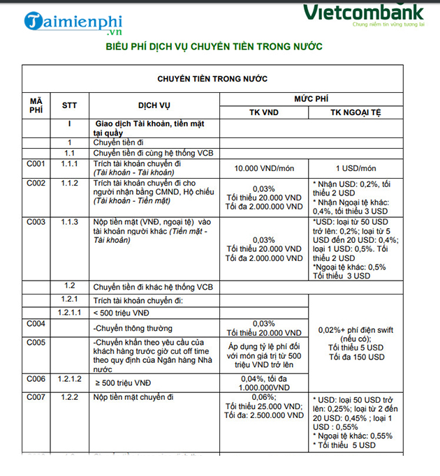 Nếu bạn đang tìm hiểu về các dịch vụ ngân hàng, chắc chắn bạn đã từng nghe đến Vietcombank – một trong những ngân hàng hàng đầu tại Việt Nam. Bảng giá dịch vụ của Vietcombank không chỉ mang đến thông tin chi tiết về các sản phẩm mà ngân hàng cung cấp, mà còn giúp bạn nắm bắt những khoản phí cần thiết cho các giao dịch hàng ngày. Trong bài viết này, chúng ta sẽ cùng nhau khám phá bảng giá dịch vụ của Vietcombank, từ đó dễ dàng hơn trong việc lựa chọn những dịch vụ phù hợp với nhu cầu tài chính của bản thân.