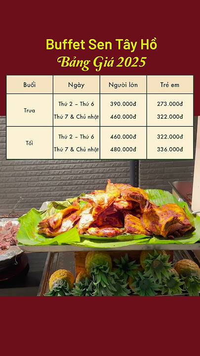 Sen Tây Hồ là một điểm đến nổi tiếng ở Hà Nội, thu hút nhiều người yêu thiên nhiên và ẩm thực. Nếu bạn muốn thưởng thức buffet tại Sen Tây Hồ, giá vé năm 2025 dao động tùy theo thời gian và ngày trong tuần. Cụ thể, buffet trưa từ thứ 2 đến thứ 6 có giá khoảng 380.000 đồng/người lớn, cuối tuần và ngày lễ khoảng 430.000 đồng. Buổi tối giá cao hơn, từ 430.000 đến 450.000 đồng/người lớn, trẻ em cũng có mức giá ưu đãi tương ứng.