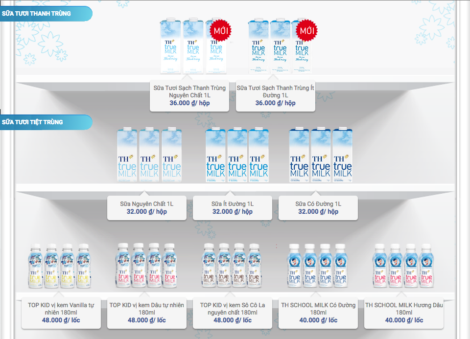 TH True Milk chú trọng đầu tư vào công nghệ chăn nuôi hiện đại và hệ thống trang trại đạt chuẩn, đảm bảo nguồn sữa tươi nguyên chất, an toàn cho sức khỏe người dùng. Thương hiệu này còn nổi bật với chiến lược định giá cao nhằm khẳng định chất lượng, đồng thời sử dụng bao bì Tetra Pak hiện đại giúp bảo quản sữa tốt hơn và thuận tiện khi sử dụng.
