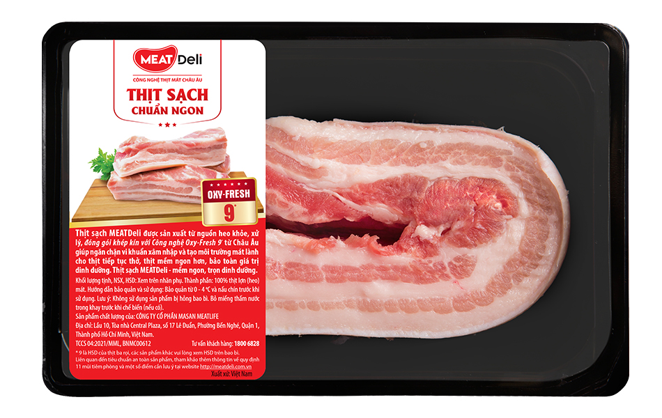 Điểm đặc biệt của MEAT Deli là quy trình khép kín, từ việc nuôi heo theo tiêu chuẩn Global GAP, không sử dụng chất tạo nạc hay kháng sinh, đến công đoạn giết mổ nhân văn bằng khí CO2, đảm bảo heo không bị căng thẳng. Thịt được đóng gói bằng công nghệ Oxy-Fresh giúp ngăn ngừa vi khuẩn xâm nhập mà không cần dùng hóa chất bảo quản.