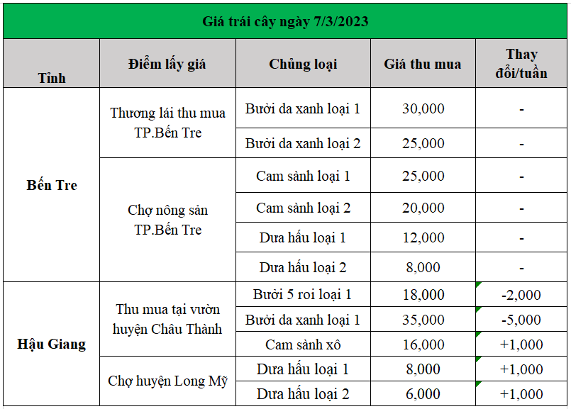 Tóm lại, giá trái cây hiện nay không có nhiều thay đổi đột ngột, các loại phổ biến như sầu riêng, quýt vẫn giữ mức giá ổn định, thuận tiện cho người tiêu dùng trong việc lựa chọn và sử dụng hàng ngày.