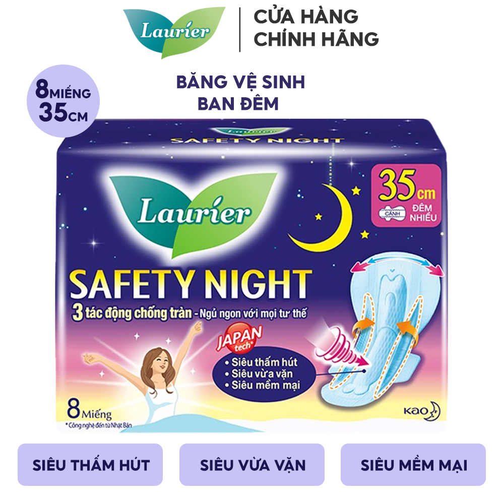 Trong những ngày “đèn đỏ”, băng vệ sinh là người bạn đồng hành không thể thiếu của phái nữ, đặc biệt là vào ban đêm khi nhu cầu thấm hút và bảo vệ càng được quan tâm hơn bao giờ hết. Băng vệ sinh Laurier ban đêm 35cm với thiết kế dài, ôm sát, mang lại cảm giác an tâm tuyệt đối suốt giấc ngủ dài. Bài viết dưới đây sẽ giúp bạn hiểu rõ hơn về đặc điểm, công dụng, cách sử dụng, cũng như các ưu nhược điểm của sản phẩm này, từ đó có lựa chọn phù hợp cho bản thân trong những ngày nhạy cảm.
