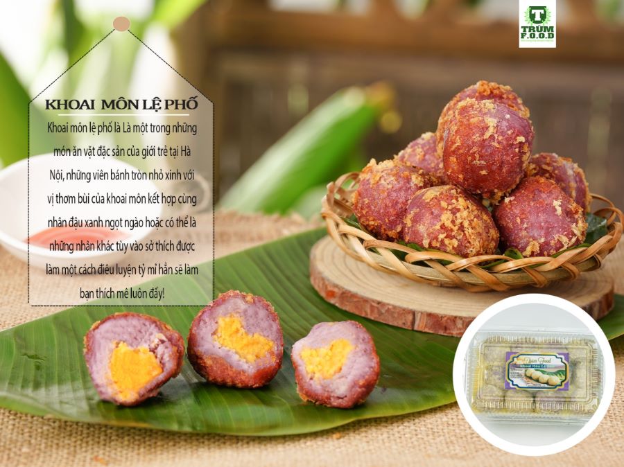 Một số cửa hàng như Tôm Fruits hay Trùm Food cũng cung cấp bánh khoai môn Lệ Phố với cam kết chất lượng, giá cả hợp lý và dịch vụ giao hàng nhanh chóng, giúp bạn dễ dàng thưởng thức món ăn vặt hấp dẫn này ngay tại nhà. Khi mua, bạn nên chọn nơi có bảo quản đúng cách và không dùng chất bảo quản để đảm bảo an toàn sức khỏe.