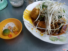 Điểm hấp dẫn của bánh tầm cay ở đây chính là hương vị đậm đà, cay nồng đặc trưng nhưng không quá gắt, hòa quyện cùng vị béo ngậy của cà ri gà, xíu mại và các loại rau sống tươi ngon ăn kèm. Sợi bánh tầm trắng trong, mềm dẻo, được nấu vừa tới, giữ được độ thơm ngon tự nhiên của gạo nhà quê. Khi thưởng thức, bạn sẽ cảm nhận được vị cay cay kích thích, vị ngọt thanh và chút chua nhẹ từ nước sốt cà ri, tạo nên sự hài hòa khó quên.
