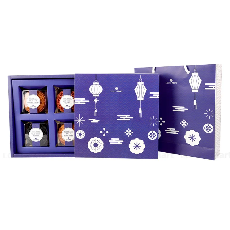 Về hộp quà, Lotte Mart cung cấp các lựa chọn đa dạng với hộp 4 vị có giá khoảng 249.000 đồng và hộp 6 vị giá 449.000 đồng. Các hộp quà này không chỉ chú trọng về chất lượng bánh mà còn được thiết kế đẹp mắt, mang chủ đề “Vị đoàn viên” nhằm truyền tải ý nghĩa sum họp gia đình trong dịp Trung Thu. So với các thương hiệu khác như Kinh Đô, giá bánh và hộp quà tại Lotte Mart nằm trong phân khúc trung và cao cấp, phù hợp với nhu cầu quà tặng và thưởng thức.