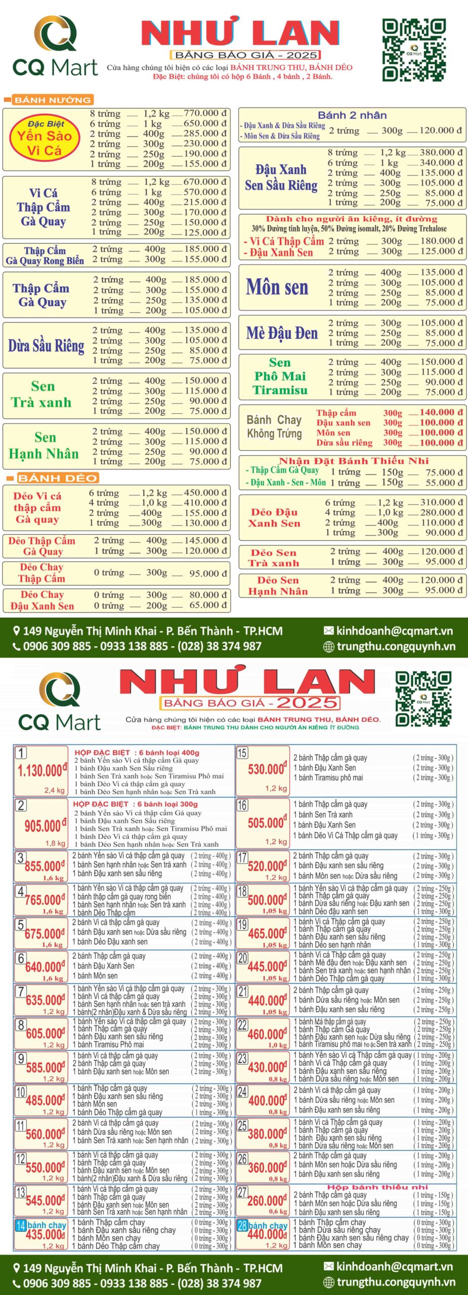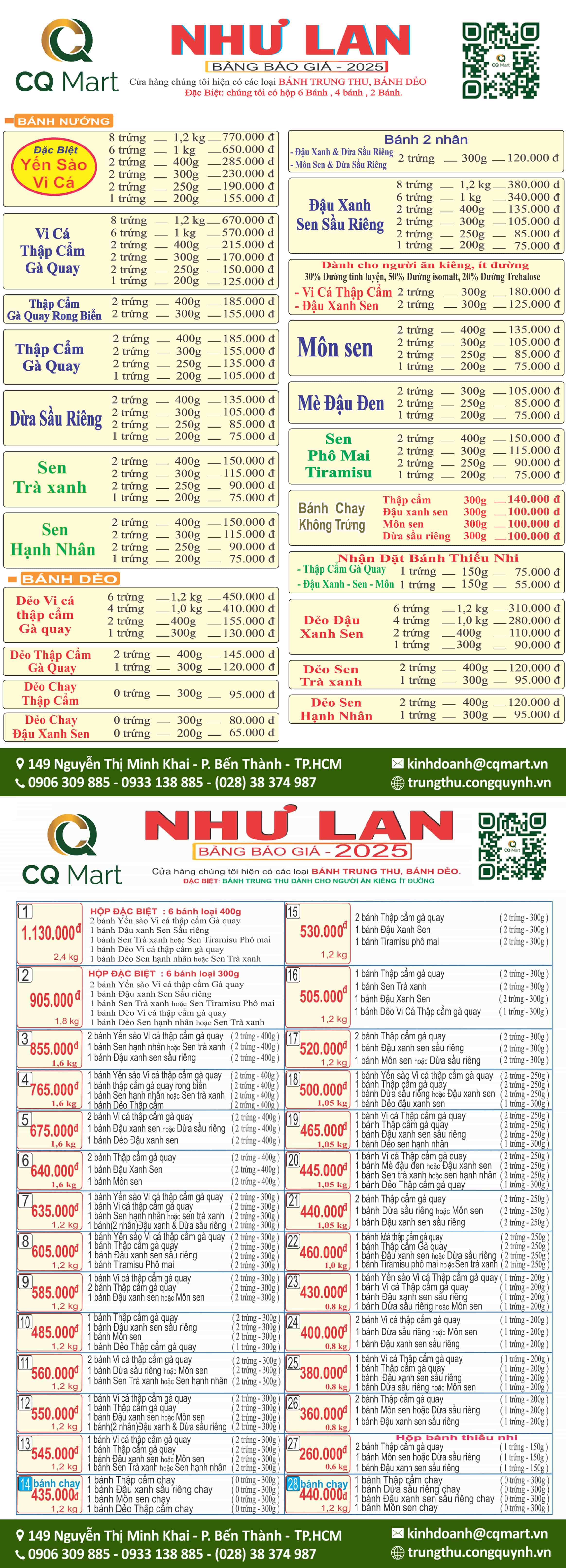 Bảng Giá Bánh Trung Thu Như Lan