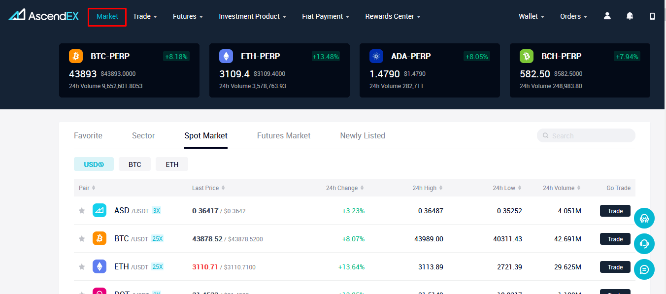 Không chỉ dừng lại ở giao dịch spot, AscendEX còn mở rộng sang margin, futures, cùng các dịch vụ ví và staking cho nhiều loại tiền điện tử phổ biến như Bitcoin, Ethereum hay XRP. Điều này giúp người dùng có thêm nhiều lựa chọn đầu tư, phù hợp với nhu cầu và chiến lược khác nhau. Hiện tại, sàn hỗ trợ giao dịch hơn 700 loại tiền ảo với gần 800 cặp giao dịch, trong đó cặp BTC/USDT luôn dẫn đầu về khối lượng.