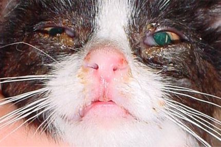 Khi bệnh nặng hơn, mèo có thể lờ đờ, chảy nước mũi, hắt xì – dấu hiệu liên quan hô hấp do cúm hoặc nhiễm trùng. Màng mắt nhô ra, mắt loét đỏ, rất dễ dẫn đến mù nếu không xử lý kịp.