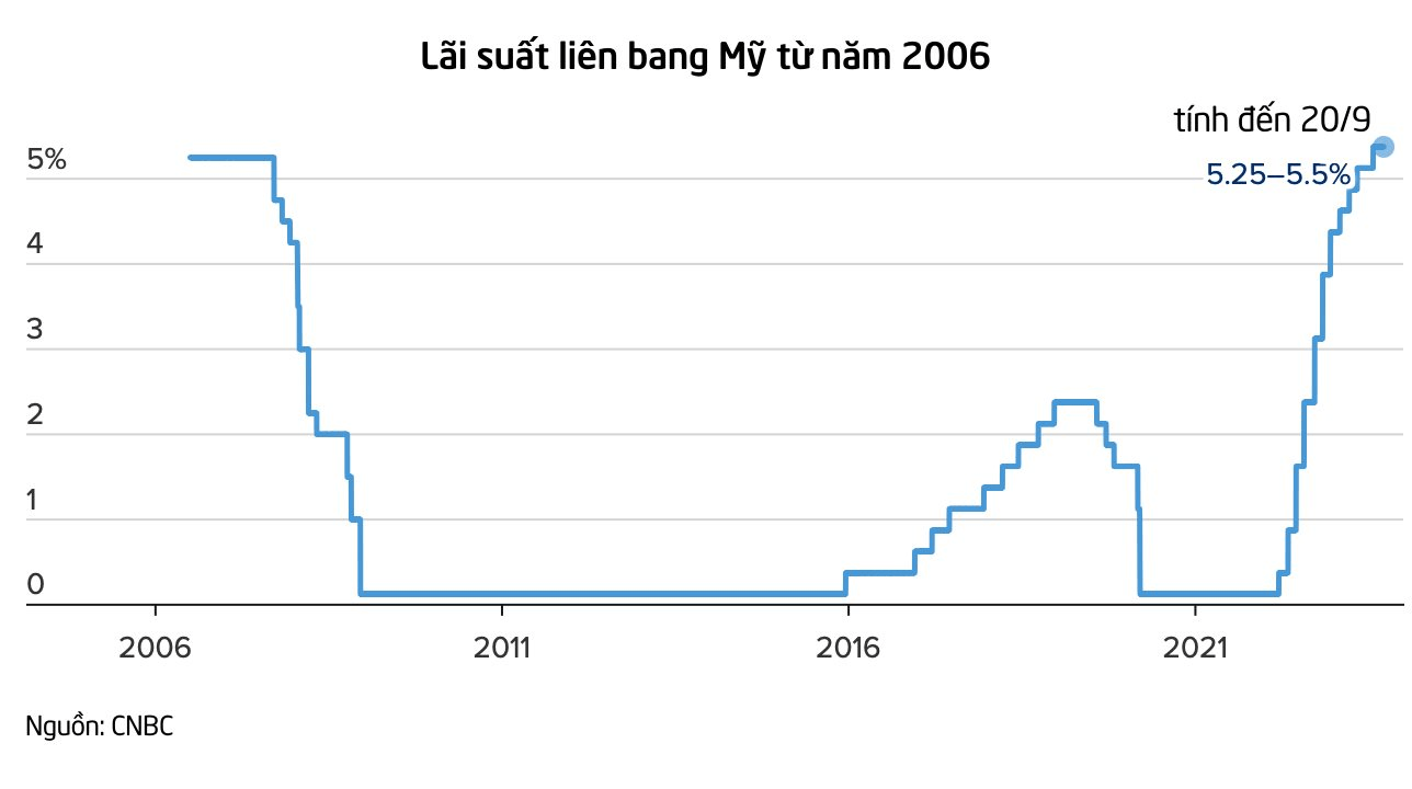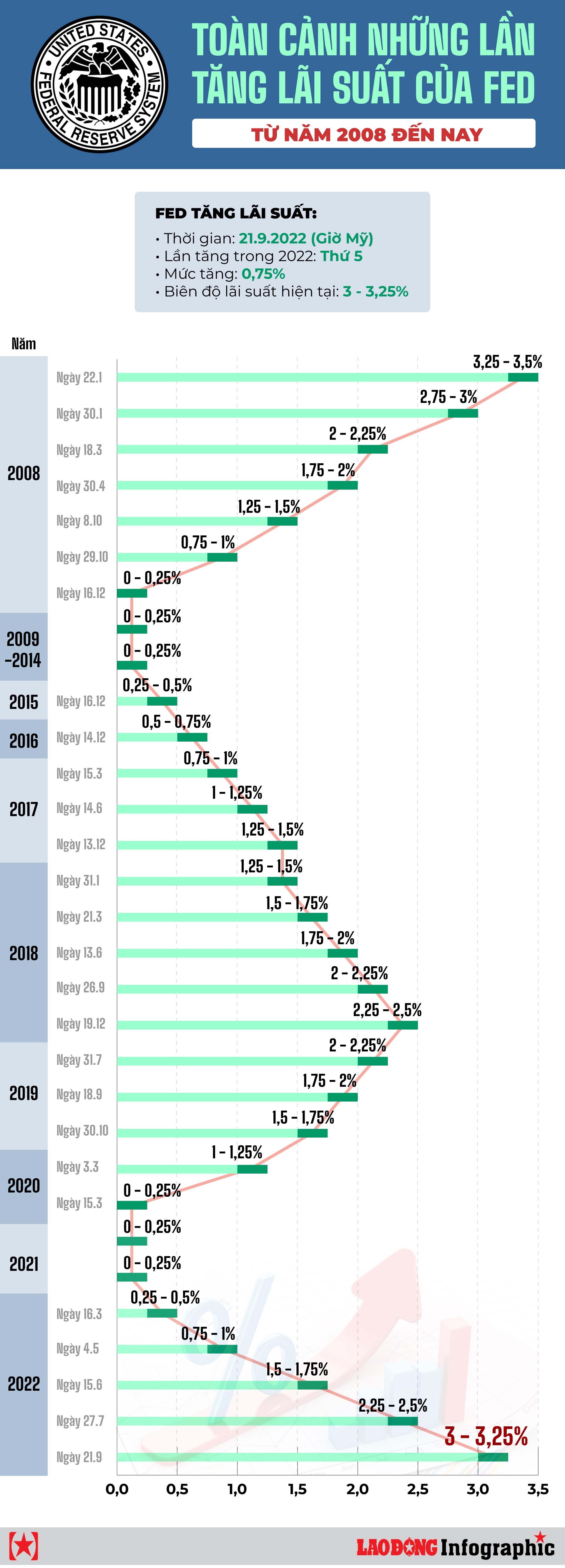 Từ đầu năm 2022 đến giữa năm 2023, Fed đã liên tục tăng lãi suất với nhiều đợt tăng mạnh nhằm kiểm soát lạm phát đang ở mức cao. Ví dụ, trong năm 2022, Fed đã tăng lãi suất từ mức gần 0% lên đến hơn 4%, với các lần tăng phổ biến là 0,25% đến 0,75% mỗi lần, đặc biệt có những đợt tăng 0,75% liên tiếp trong nửa cuối năm. Mục tiêu của Fed là làm chậm lại tốc độ tăng trưởng kinh tế để giảm áp lực lạm phát, bảo vệ sức mua của người dân.