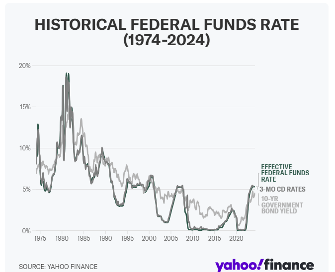 Biểu đồ lãi suất Fed qua các năm phản ánh rõ nét sự biến động của nền kinh tế Mỹ và thế giới. Từ đầu thập niên 1990, Fed đã nhiều lần điều chỉnh lãi suất để đối phó với suy thoái và kiểm soát lạm phát. Ví dụ, đầu những năm 1990, Fed giảm lãi suất xuống khoảng 3% để kích thích kinh tế, rồi tăng lên đến 6% giữa thập niên khi kinh tế phục hồi.