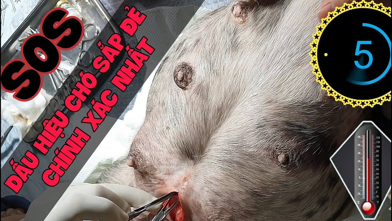 Trước đó, chó mẹ thường bồn chồn, dạo ổ, bụng sa xuống, núm vú căng sữa trắng đặc. Thân nhiệt hạ thấp 12-24 giờ trước sinh, âm hộ sưng và tiết dịch trong.