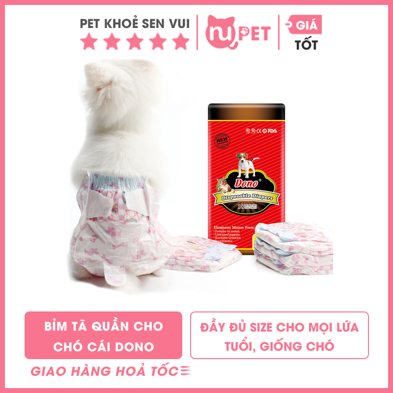Có nhiều loại như bỉm Dono cho chó đực, cái hay mèo, đủ size phù hợp mọi giống. Dùng đúng cách: chọn size vừa vặn, thay 4-6 tiếng/lần, lau sạch vùng kín trước khi mặc. Không chỉ vệ sinh, bỉm còn ngăn vi khuẩn sinh sôi, bảo vệ sức khỏe cún yêu.