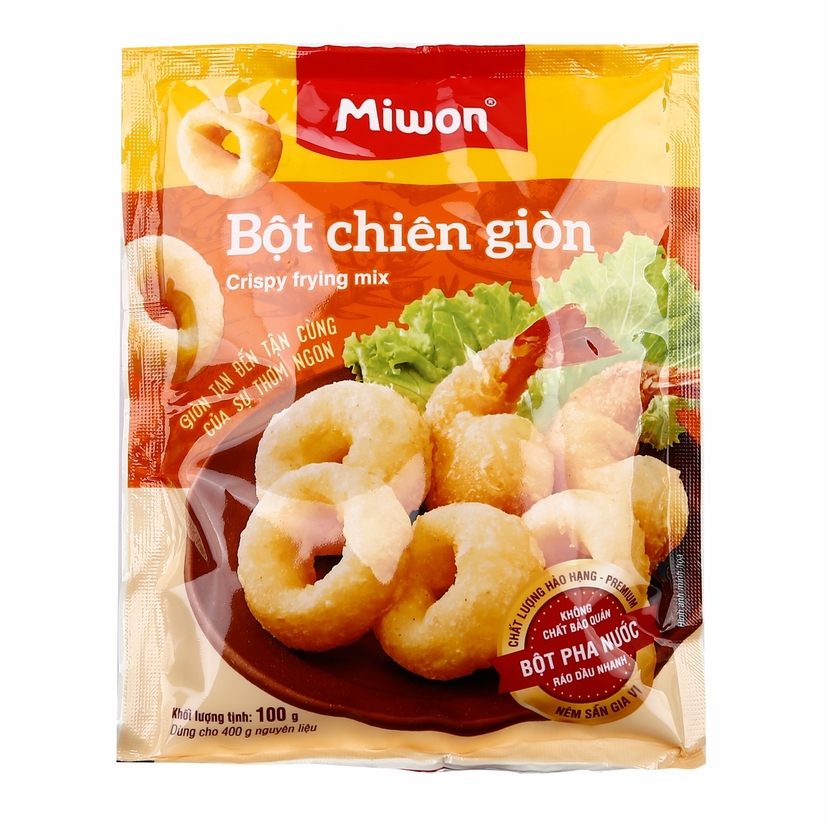 Bột Chiên Xù Miwon là một sản phẩm rất quen thuộc trong căn bếp của nhiều gia đình. Với các thành phần tự nhiên như bột mì, tinh bột khoai mì, đường, muối và bơ, bột chiên xù Miwon mang đến hương vị thơm ngon và an toàn cho sức khỏe. Gói bột 100g đủ để bạn chế biến rất nhiều món ăn như tôm chiên, thịt chiên, cá chiên, hay thậm chí là các loại rau củ quả cũng trở nên hấp dẫn hơn khi được áo một lớp bột giòn tan.