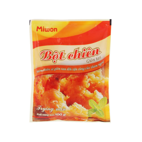 Bột chiên xù Miwon là một sản phẩm nổi bật trong gian bếp của nhiều gia đình Việt Nam. Đây là loại bột mịn hơn bột chiên xù thông thường, được thiết kế đặc biệt để lăn các loại thực phẩm trước khi chiên, tạo nên lớp vỏ vàng giòn hấp dẫn. Nguyên liệu chính của bột bao gồm bột mì, tinh bột sắn, bột ngô, cùng với một số gia vị như bột hành, bột tỏi và muối, mang lại hương vị phong phú cho món ăn.