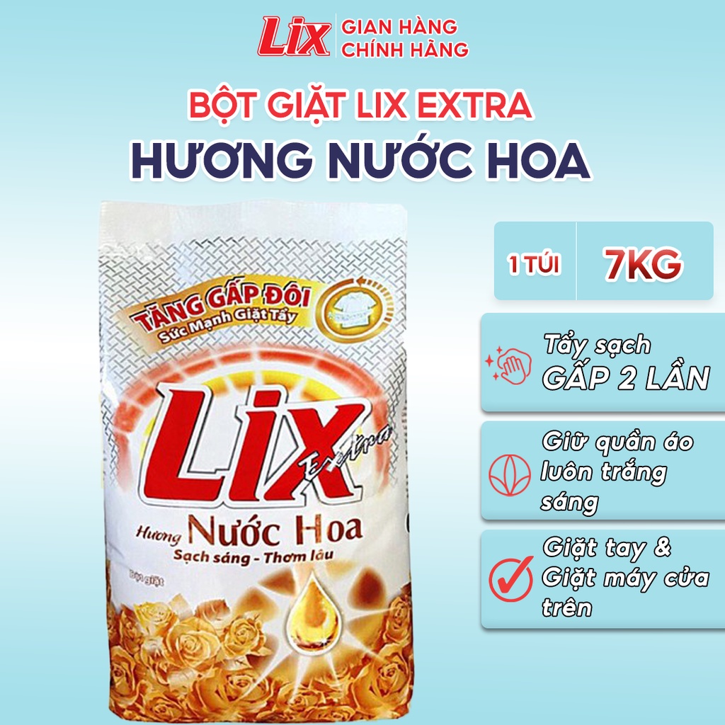 Bột giặt Lix Extra 7kg hương nước hoa là “người bạn” quen thuộc trong nhà mình, đặc biệt với những ai bận rộn mà vẫn muốn quần áo sạch bóng, thơm tho.