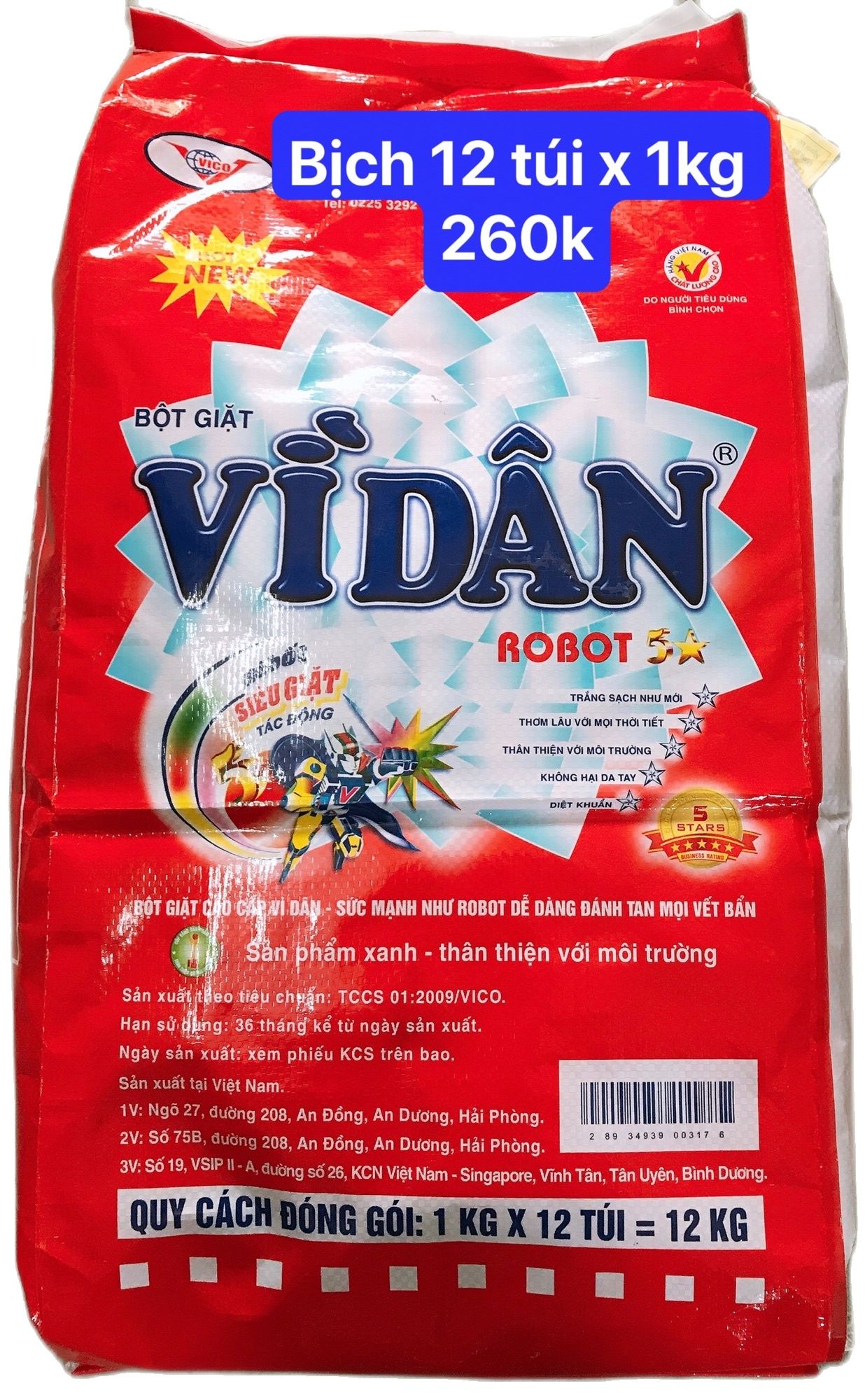 Bột giặt Vì Dân, đặc biệt là dòng Robot 5 sao cao cấp, được đánh giá khá tốt nhờ công thức vượt trội với chất tẩy sinh học, chất tăng trắng và hương liệu tự nhiên. Nó đánh bật vết bẩn cứng đầu từ bề mặt sâu vào sợi vải, diệt khuẩn, khử mùi hôi hiệu quả, trả lại quần áo trắng sạch như mới.