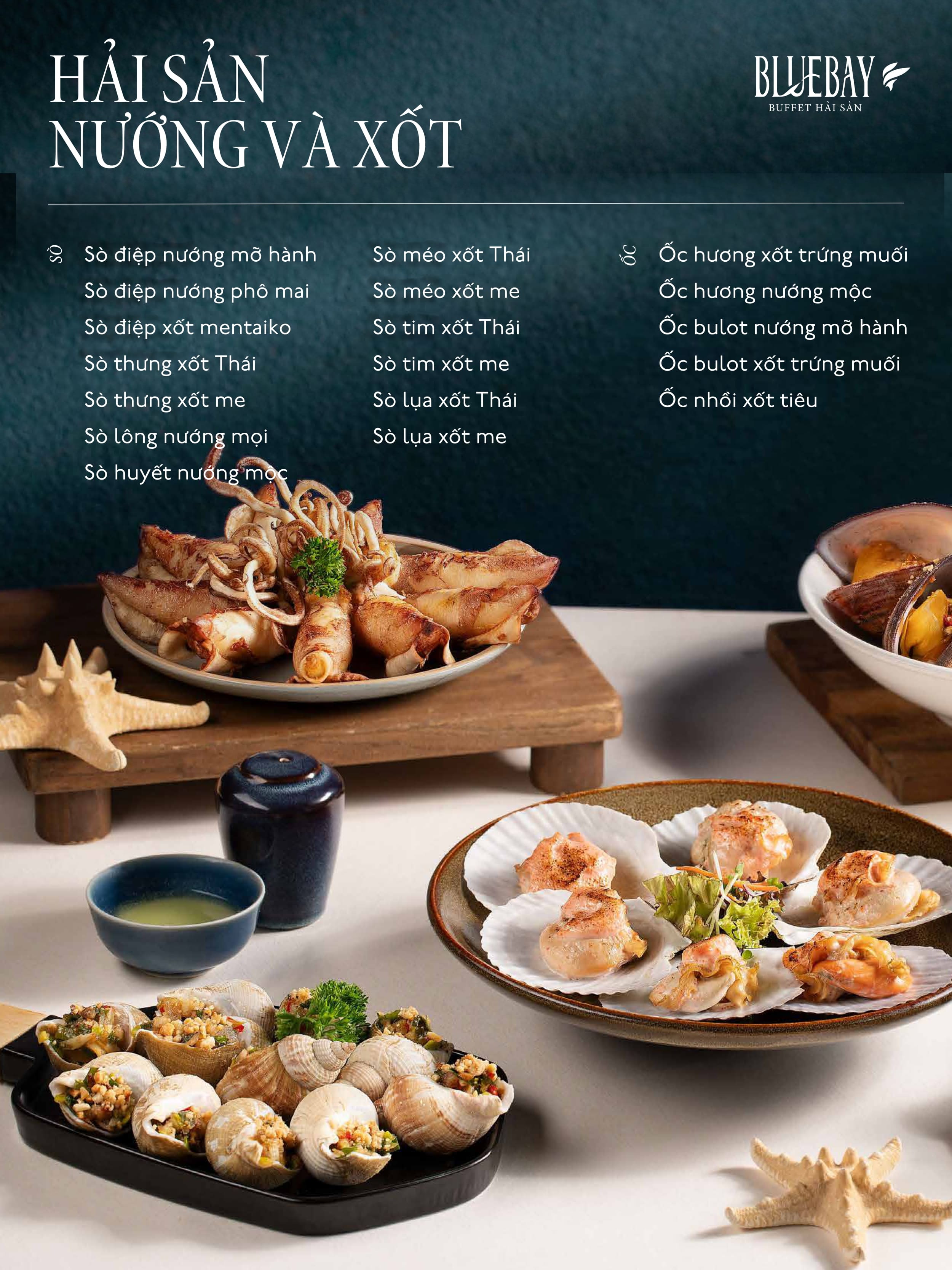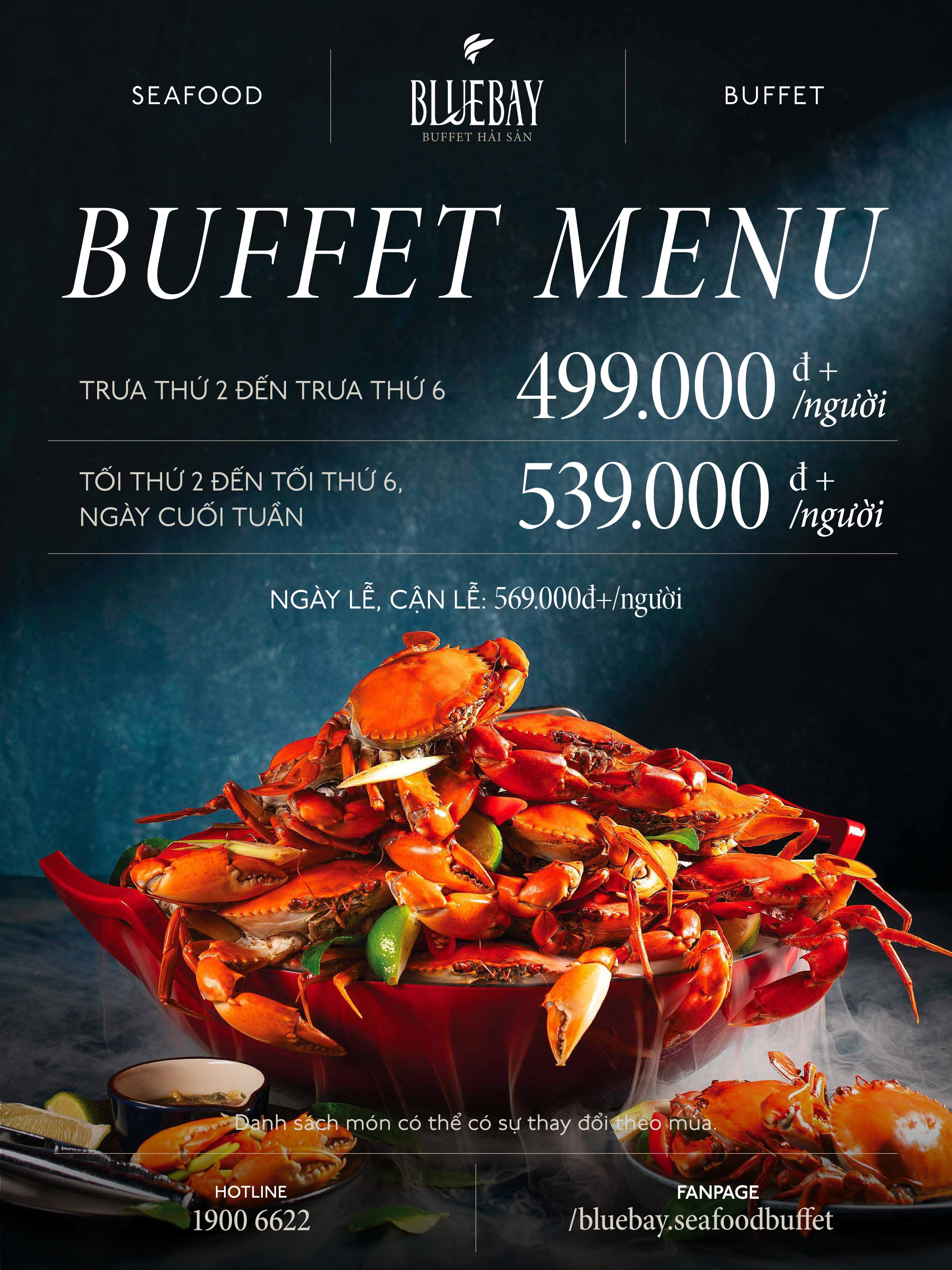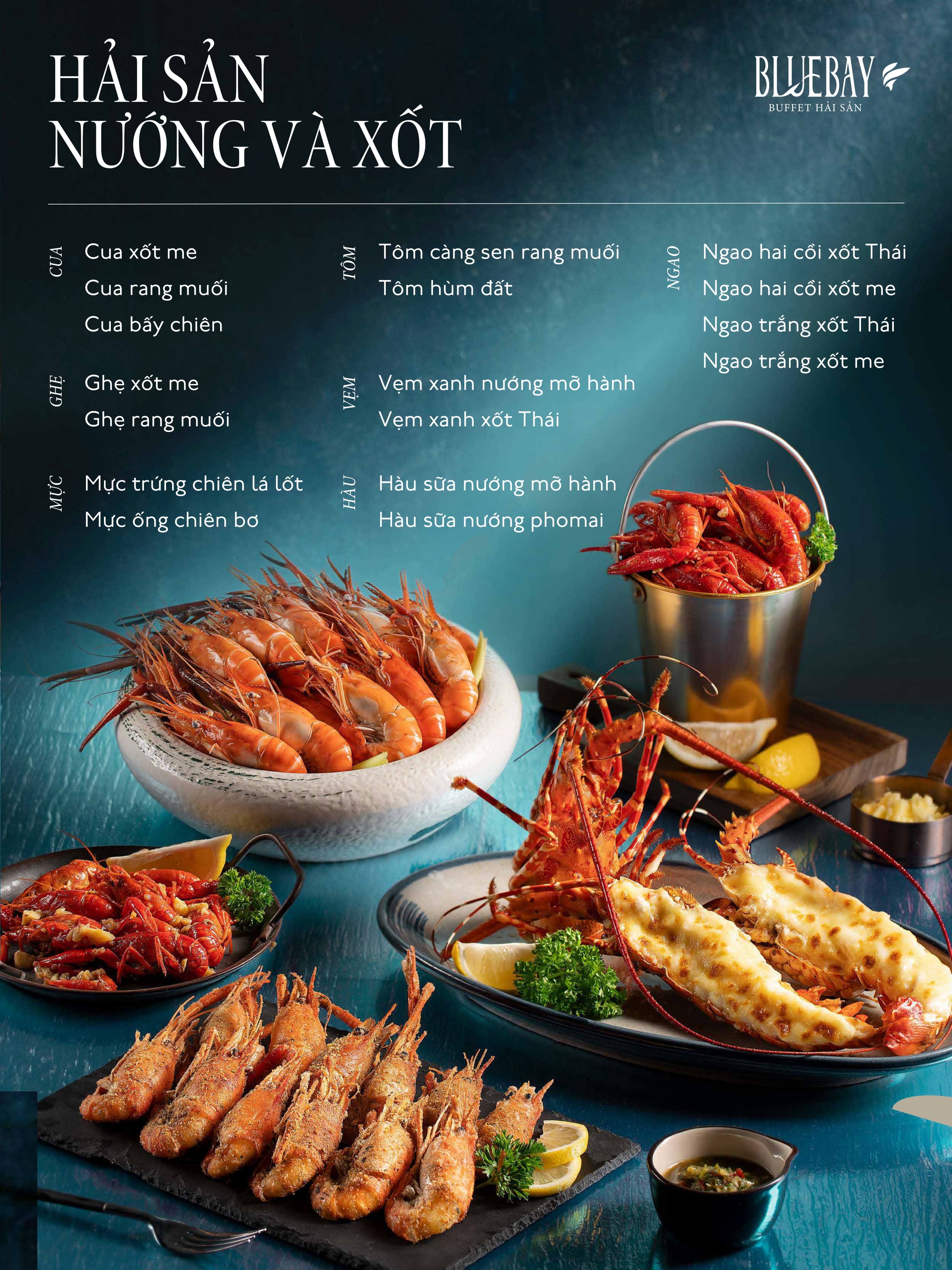 Buffet hải sản là một hình thức ẩm thực hấp dẫn, cho phép thực khách thoả sức khám phá đa dạng các món hải sản với mức giá cố định tối thiểu từ 300.000 đồng. Thực đơn buffet hải sản vô cùng phong phú, bao gồm cua, ghẹ, tôm, mực, bề bề và ốc hương, được chế biến thành nhiều món ăn hấp dẫn như hấp, luộc, nướng, xào, chiên và rang muối.