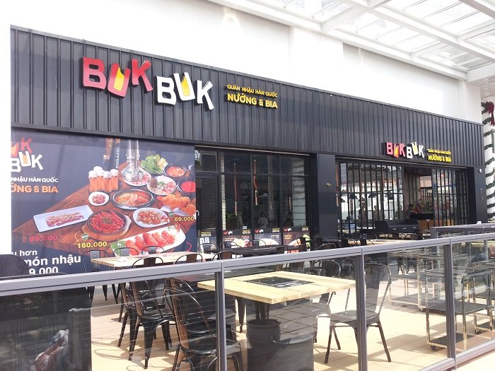 Không gian của Buk Buk được thiết kế thân thiện, tạo cảm giác thoải mái cho những buổi hẹn hò lãng mạn, họp mặt gia đình hay buổi tụ tập bạn bè. Mang đến hương vị nướng đường phố nổi tiếng của xứ sở Kim Chi, Buk Buk hứa hẹn sẽ làm hài lòng cả những thực khách khó tính nhất.