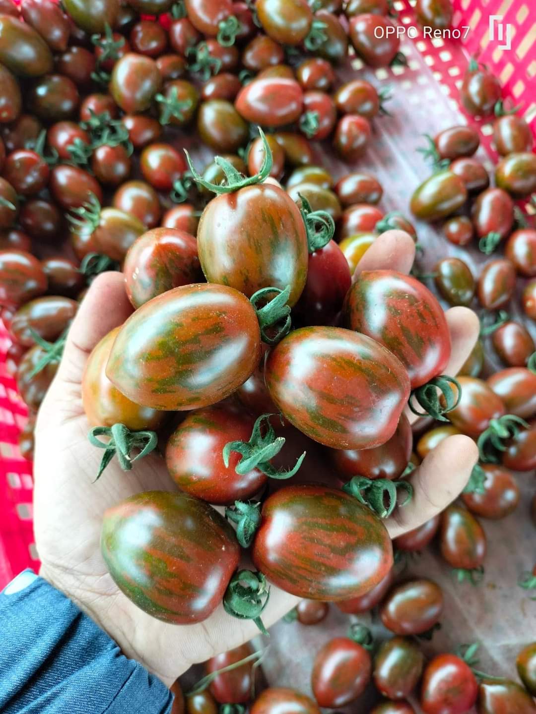 Cà chua socola Đà Lạt, hay còn gọi là cà chua cherry socola, là một loại thực phẩm độc đáo với lớp vỏ ngoài có màu nâu đỏ óng ánh như màu socola. Ở Đà Lạt, nơi có khí hậu lý tưởng, loại cà chua này phát triển mạnh mẽ, tạo ra những trái cà chua nhỏ xinh, tròn hoặc hình bầu dục, kích thước chỉ bằng đốt ngón tay cái.