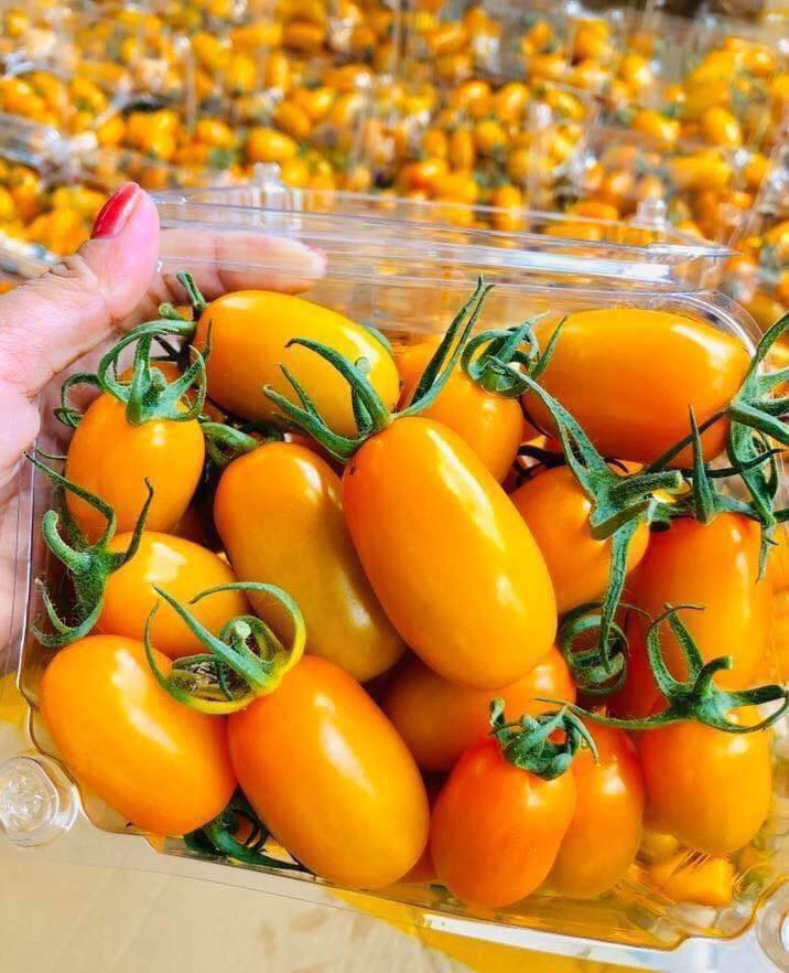 Cà chua sữa tươi Đà Lạt, hay còn gọi là cà chua cherry vàng, thực sự là một món quà từ thiên nhiên. Với hình dáng bầu dục nhỏ nhắn, kích thước chỉ bằng một đốt ngón tay và lớp vỏ mỏng màu vàng hoặc cam nhạt, chúng mang đến sự hấp dẫn ngay từ cái nhìn đầu tiên. Khi chín, quả cà chua trở nên mọng nước, vừa chín tới với vị ngọt thanh nhẹ nhàng, không quá chua, tạo cảm giác dễ chịu khi thưởng thức.
