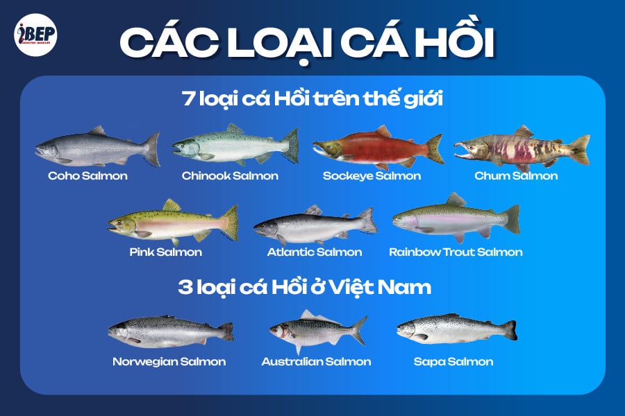 Cá hồi là một trong những loại hải sản được yêu thích trên toàn thế giới, và ở Việt Nam, có nhiều loại cá hồi phổ biến mà người tiêu dùng thường chọn lựa. Trong số đó, cá hồi Na Uy nổi bật với chất lượng hàng đầu, phân thành hai giống chính là cá hồi Đại Tây Dương và cá hồi vịnh hẹp. Chúng có vị thơm ngon và là nguyên liệu tuyệt vời cho nhiều món ăn, đặc biệt là sashimi.