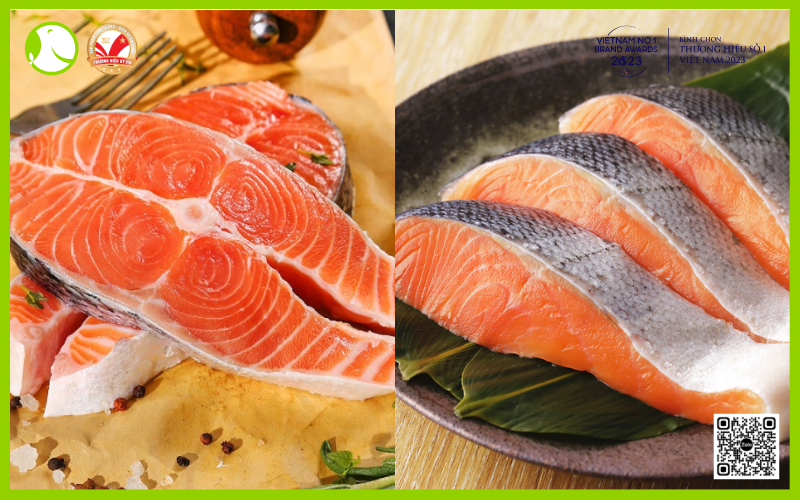 * Màu sắc: Cá hồi tươi có màu cam hồng tươi sáng, không xỉn hay có đốm lạ.