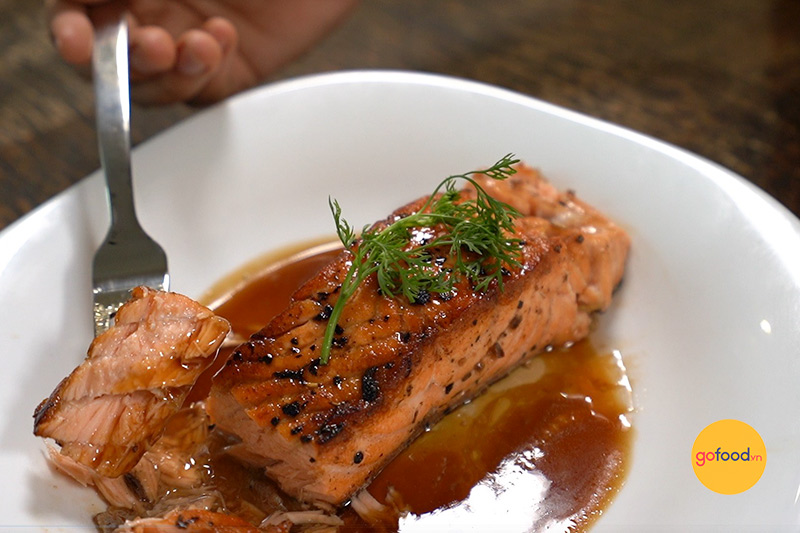 Sau khi có nước sốt, bạn sẽ marinate cá hồi trong sốt Teriyaki để cho cá thấm đều gia vị. Kỹ thuật này rất quan trọng vì nó giúp cá hồi trở nên đậm đà và thơm ngon hơn khi nướng. Tiếp theo, cá hồi được nướng cho đến khi da giòn tan, thịt cá chín mềm và quyện trong lớp sốt bóng mịn.
