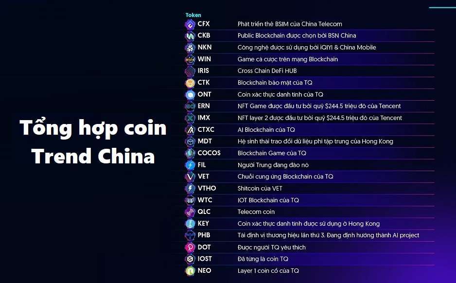 Bảng xếp hạng coin Trung Quốc thường tập trung vào các đồng tiền điện tử có nguồn gốc hoặc được phát triển bởi các dự án trong nước, đồng thời phản ánh sức mạnh và tiềm năng của thị trường crypto tại Trung Quốc. Các tiêu chí để xếp hạng thường dựa trên vốn hóa thị trường, khối lượng giao dịch, công nghệ nền tảng, cũng như lộ trình phát triển của dự án.