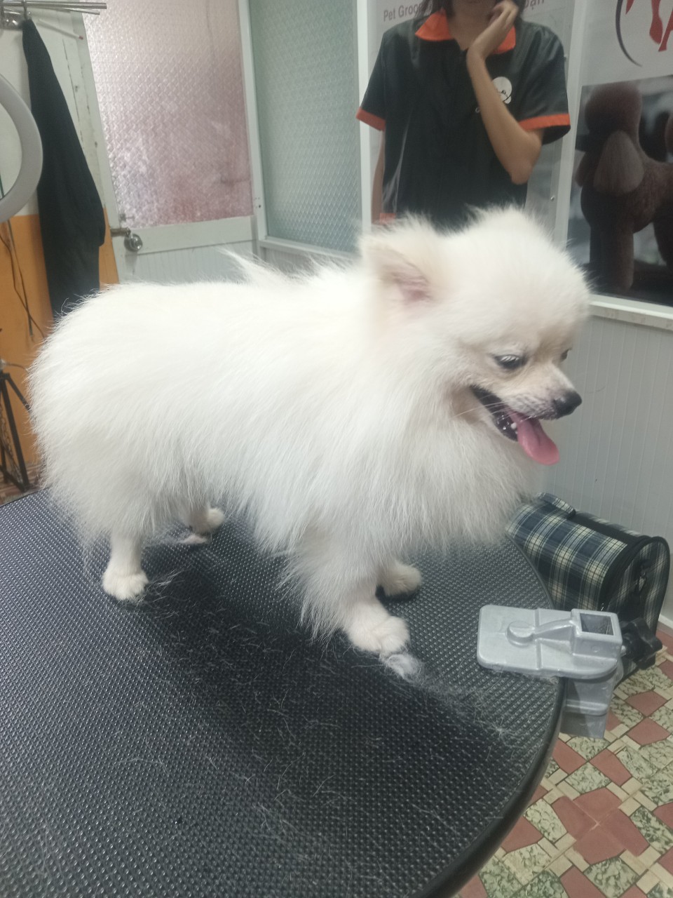 Khi cắt lông cho chú chó Phốc Sóc nhà mình, trước tiên bạn cần chuẩn bị tâm lý thật thoải mái cho bé nhé. Hãy chọn không gian yên tĩnh, cho bé làm quen với tiếng tông đơ trước để tránh hoảng sợ, vì lông Phốc Sóc dày và dài nên bé dễ nhạy cảm lắm.