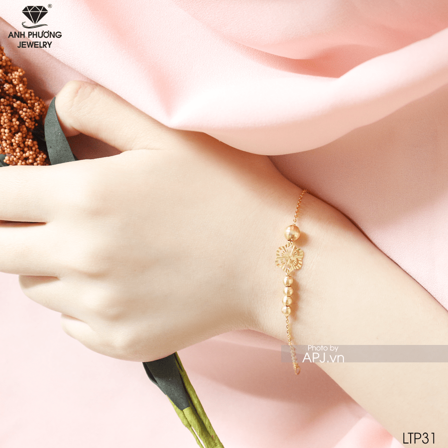 Sản phẩm được gia công từ vàng 18K chất lượng cao, giúp hạn chế tình trạng xỉn màu và giữ cho lắc tay luôn trắng sáng. Với trọng lượng khoảng 1 chỉ, sản phẩm nhẹ nhàng nhưng vẫn chắc chắn, tạo cảm giác dễ chịu cho người sử dụng. Bên cạnh đó, chiếc lắc tay còn được thiết kế với khóa cài tiện lợi, giúp bạn dễ dàng đeo vào và tháo ra.