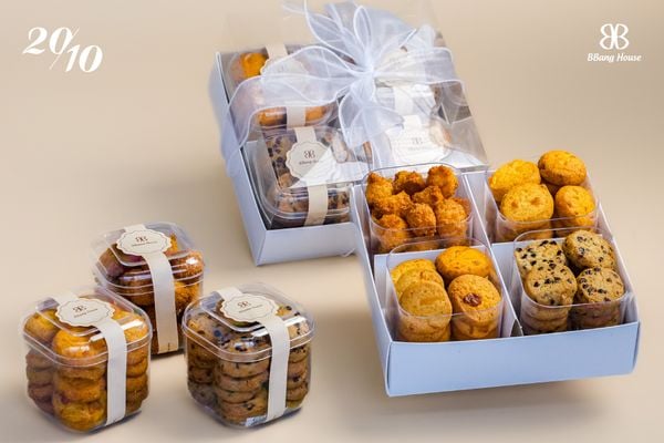 Tại BBang House, họ luôn tâm huyết mang đến ba hương vị bánh cookies thơm ngon nhất: dừa, phô mai và socola. Những mẫu quà tặng bánh kẹo sẽ là sự lựa chọn hoàn hảo cho khách mời trong các buổi tiệc như đám cưới, sinh nhật hay hội nghị. Đặc biệt, bạn có thể thêm tên theo yêu cầu lên bánh cookies icing, tạo dấu ấn riêng cho từng món quà.