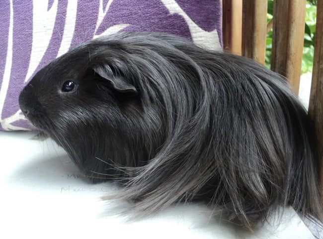 Bọ Ú Peru nổi bật với bộ lông dài mượt mà, có thể dài tới 50cm, chỉ có hai xoáy đặc trưng trên thân, khác hẳn các giống khác như Abyssinian. Lông chúng đa sắc màu, từ trắng, đen đến nâu, mềm mại ôm sát cơ thể tròn vo, chân ngắn với móng vuốt sắc để đào bới. Chúng sống theo bầy đàn, thích hang ấm áp lót cỏ khô, và tuổi thọ có thể lên đến 15 năm nếu chăm tốt.