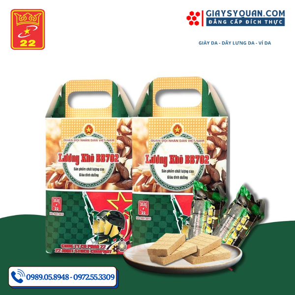Lương khô quân đội Việt Nam là một sản phẩm đặc biệt được sản xuất nhằm phục vụ cho lục quân trong những chuyến hành quân dài ngày. Đặc biệt, lương khô BB702 nổi bật với hương vị thơm ngon và sự bổ dưỡng, kết hợp hoàn hảo giữa sữa và nguyên liệu thiên nhiên, mang đến nguồn năng lượng dồi dào cho người lính.