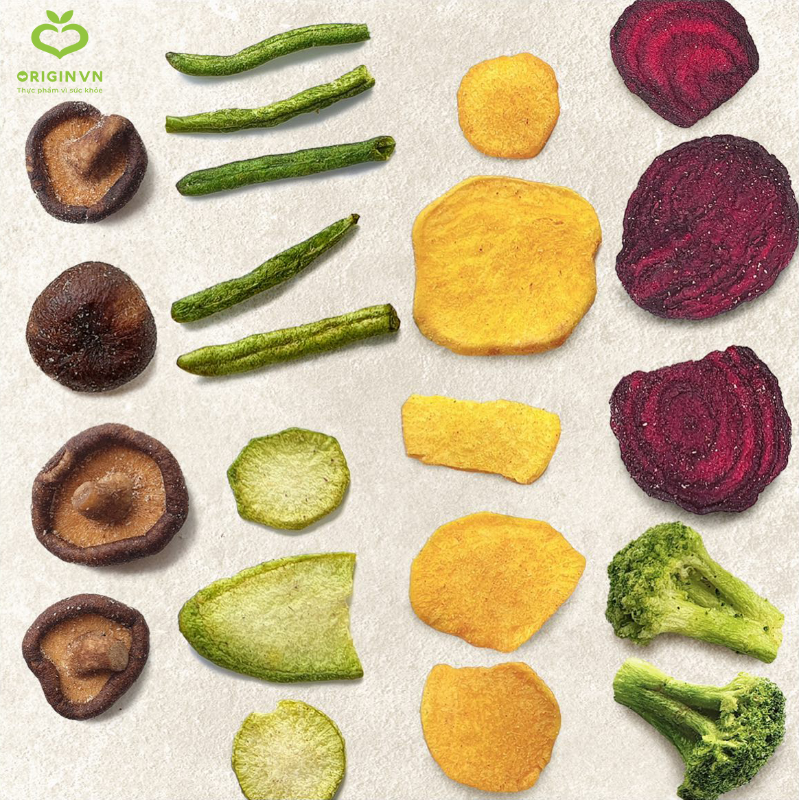 Quá trình sấy khô cũng rất quan trọng để đảm bảo chất lượng sản phẩm. Bằng phương pháp sấy lạnh, các sản phẩm rau củ giữ được độ giòn tự nhiên và hương vị đặc trưng. Đặc biệt, độ ẩm được kiểm soát chặt chẽ, giúp bảo quản lâu dài mà không lo hỏng.