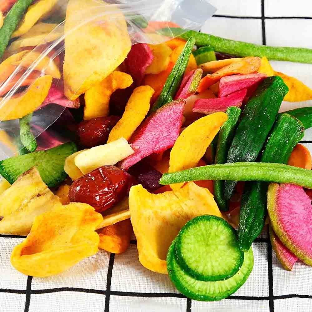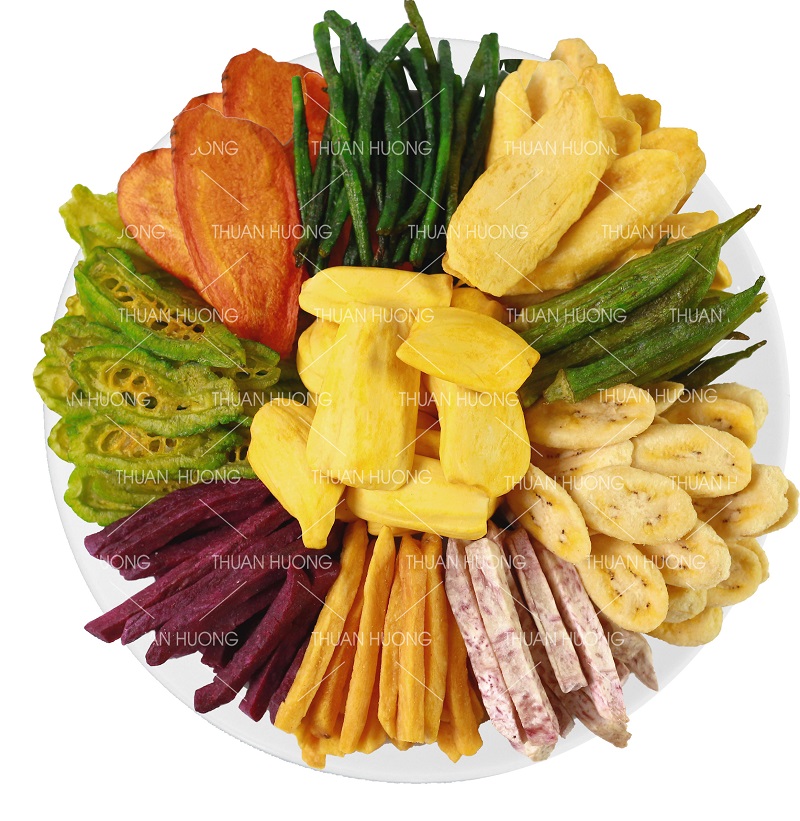 Rau củ quả sấy khô là một sản phẩm dinh dưỡng rất phổ biến và được yêu thích hiện nay. Với đa dạng thành phần như khoai lang, chuối, mít, cà rốt và khổ qua, các loại rau củ này không chỉ mang lại hương vị thơm ngon mà còn cung cấp nhiều chất dinh dưỡng cần thiết cho cơ thể. Sự kết hợp giữa các loại rau củ khác nhau giúp tạo ra những món ăn nhẹ bổ dưỡng.