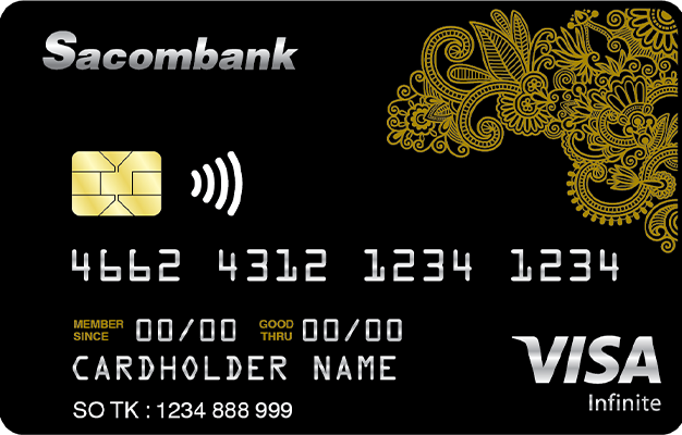 Một trong những sản phẩm nổi bật là thẻ Visa Infinite, thẻ tín dụng cao cấp với hạn mức từ 300 triệu đến 500 triệu đồng. Với mức phí thường niên lên đến 29 triệu, thẻ này mang lại cho chủ sở hữu những tiện ích đặc quyền. Điểm khác biệt của thẻ tín dụng Sacombank là khả năng tích lũy điểm thưởng, giúp khách hàng có cơ hội đổi lấy các phần quà giá trị, dặm bay, hoặc hoàn tiền hấp dẫn.