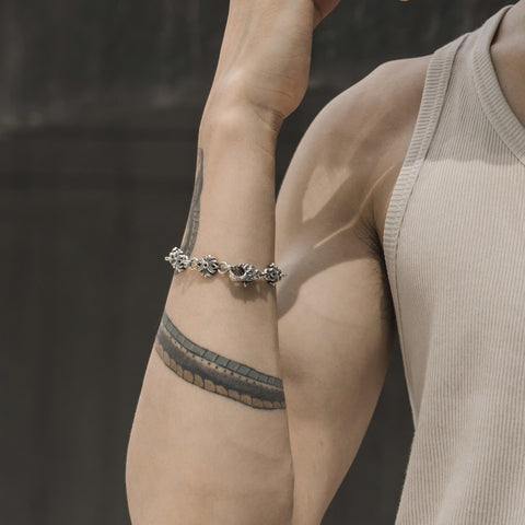 Ngoài ra, vòng tay bạc cũng rất được ưa chuộng bởi vẻ nam tính và bền bỉ. Màu bạc không quá chói chang như vàng, lại dễ phối đồ, phù hợp với những người thích sự đơn giản nhưng vẫn mạnh mẽ.