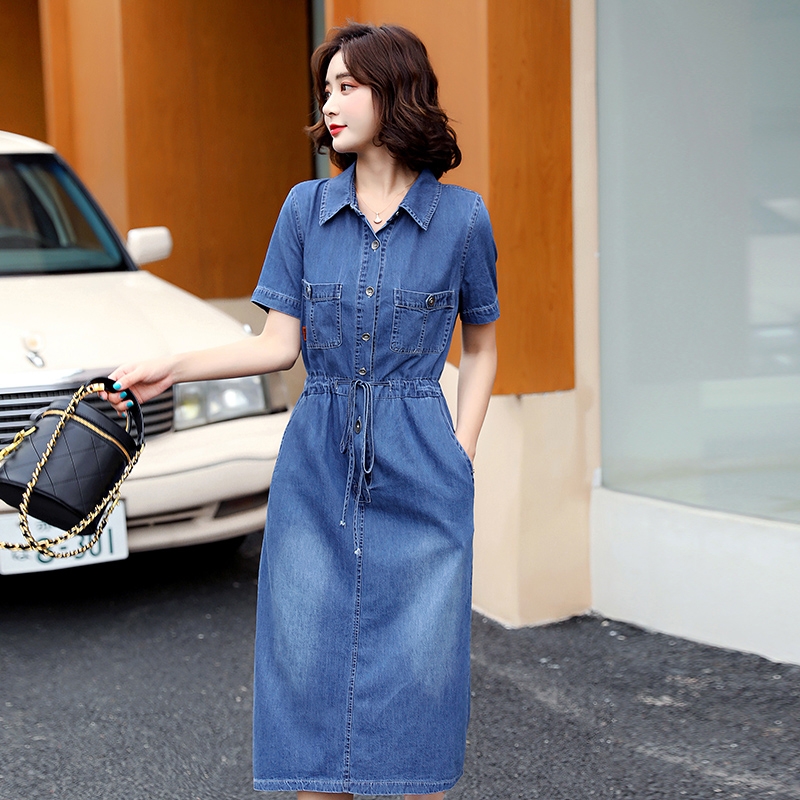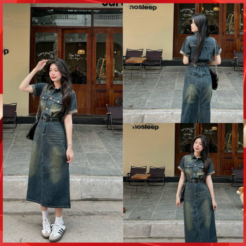 Ngoài ra, váy bò liền thân dáng dài với thiết kế chít eo cũng là một lựa chọn tuyệt vời cho những cô gái yêu thích sự năng động và trẻ trung. Những mẫu đầm này không chỉ đa dạng về kích thước mà còn có kiểu dáng phong phú, từ cổ V cúc trước cho đến đầm xoè trẻ trung lý tưởng cho những ngày hè.