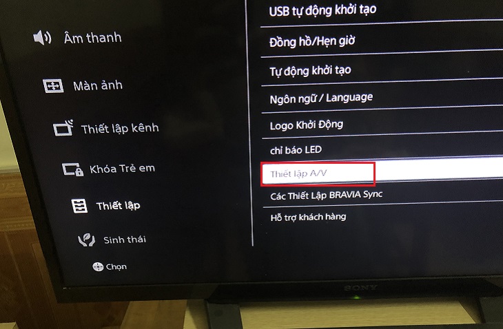 Bạn bắt đầu bằng cách nhấn nút HOME trên điều khiển từ xa để về màn hình chính, sau đó chọn Cài đặt (Settings). Dùng luôn remote đi kèm cho dễ thao tác; nhiều tivi Sony đời cũ chỉ hiện các tuỳ chọn cơ bản nên hãy kiên nhẫn tìm qua menu.
