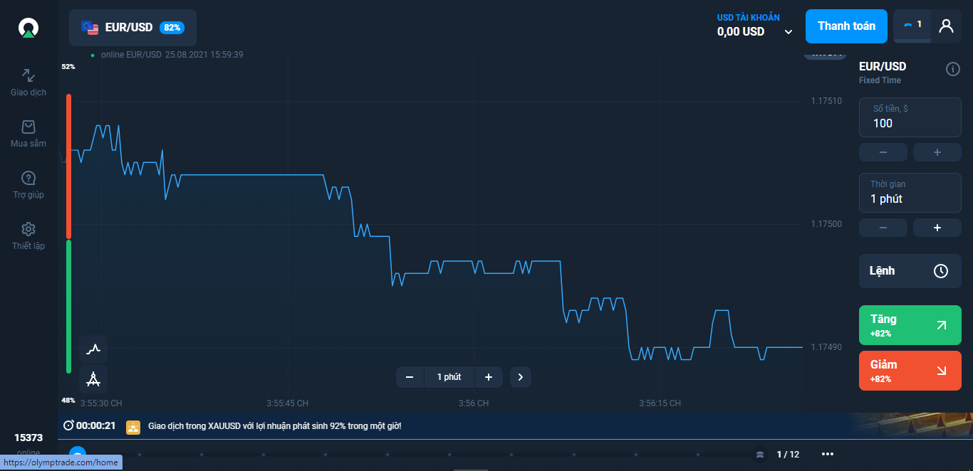 Olymptrade là một nền tảng giao dịch trực tuyến khá thân thiện, đặc biệt phù hợp với những người mới bắt đầu hoặc thích giao dịch ngắn hạn. Với số tiền nạp tối thiểu chỉ 10 USD, bạn có thể dễ dàng tiếp cận và trải nghiệm các công cụ giao dịch đa dạng như forex, cổ phiếu, tiền điện tử và hàng hóa. Giao diện của Olymptrade được thiết kế đơn giản, dễ sử dụng, giúp người dùng không bị rối khi thao tác, đồng thời hỗ trợ khách hàng 24/7 cũng là điểm cộng lớn.