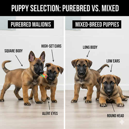 Khi chọn chó Bécgie Bỉ con, bạn nên ưu tiên quan sát ngoại hình chuẩn thuần chủng để có chú cún đẹp và khỏe mạnh. Hãy tìm những bé có đầu to khỏe, cân đối với thân hình thon gọn, mõm dài hơi nhọn màu đen đặc trưng, mắt nâu sẫm vừa phải, tai tam giác dựng đứng và cổ dài linh hoạt. Lồng ngực rộng vừa, lưng thoải dần – đây là dấu hiệu của dòng Malinois chất lượng cao.