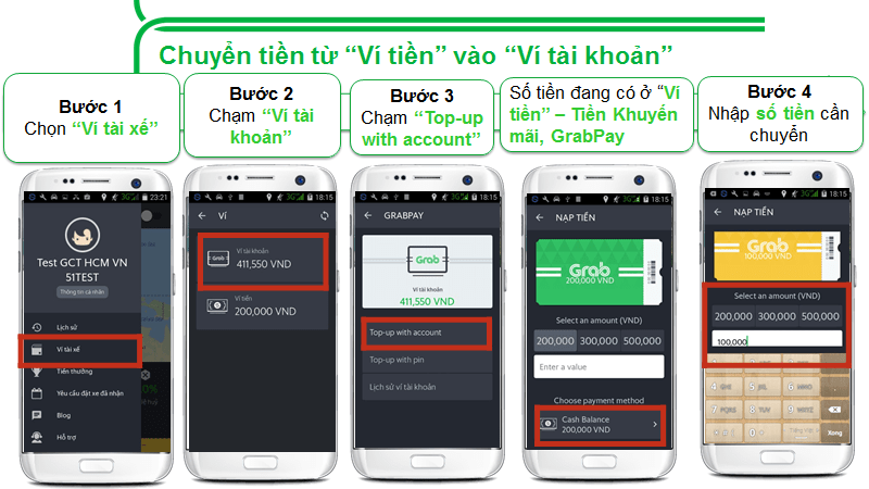 Sau đó, bạn nhập số tiền muốn chuyển từ ví trên xuống ví dưới, thường là ví dành cho tài xế hoặc ví phụ, rồi xác nhận giao dịch. Grab sẽ xử lý chuyển tiền ngay lập tức hoặc trong vài phút tùy vào hệ thống. Nếu không làm lệnh chuyển tiền, bạn cũng có thể rút tiền từ ví trên về tài khoản ngân hàng cá nhân, sau đó nạp lại vào ví dưới nếu cần.