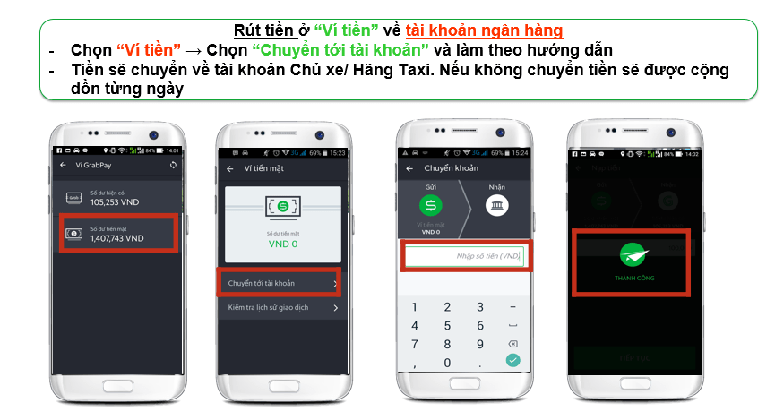 Để rút tiền từ ví Grab về tài khoản ngân hàng, bạn chỉ cần thực hiện vài bước đơn giản trên ứng dụng Grab Driver. Trước hết, hãy đảm bảo bạn đã liên kết tài khoản ngân hàng với ví Grab. Sau đó, vào mục “Ví tài xế” trên ứng dụng, chọn “Rút tiền”, nhập số tiền muốn chuyển và xác nhận giao dịch. Tiền sẽ được chuyển thẳng vào tài khoản ngân hàng của bạn, thường là ngay lập tức hoặc trong vòng 1-2 ngày làm việc tùy ngân hàng.