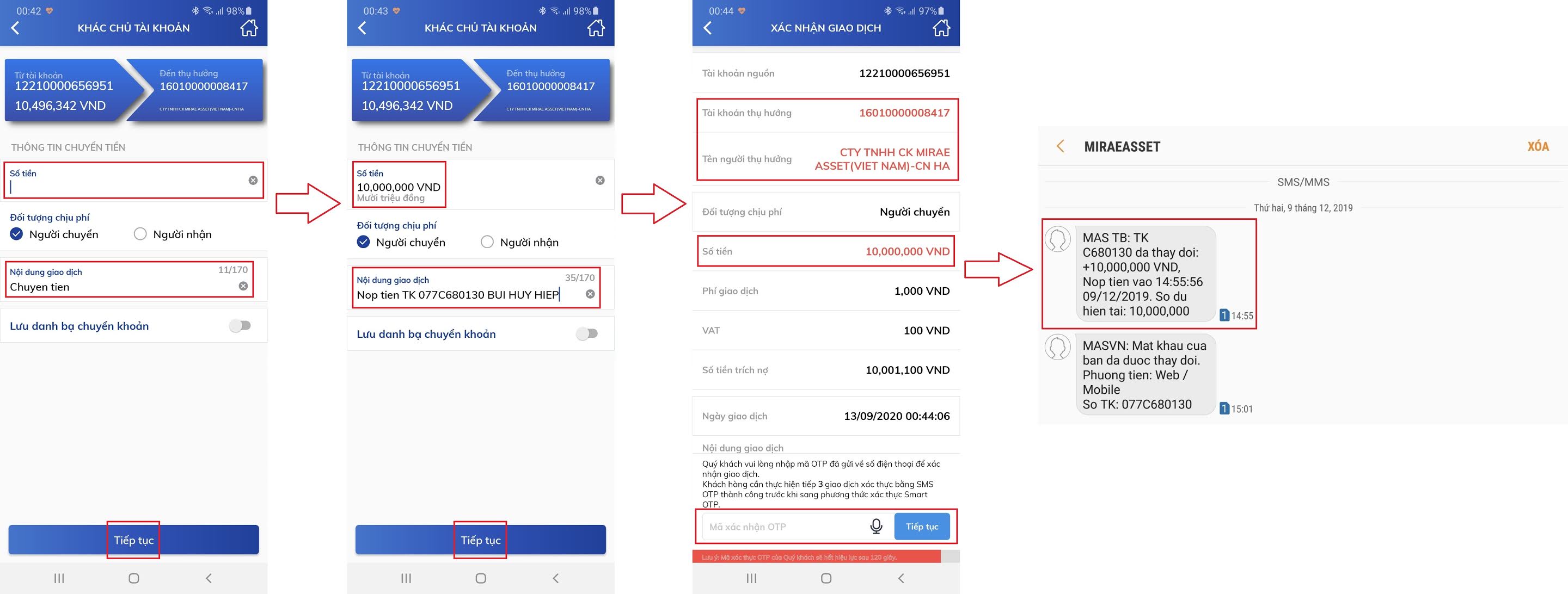 Một điểm quan trọng là bạn nên kiểm tra kỹ số tài khoản và tên tài khoản trước khi xác nhận giao dịch để tránh chuyển nhầm. Giao dịch sẽ được xử lý nhanh chóng, tuy nhiên những giao dịch thực hiện vào khoảng thời gian từ 17h đến 20h có thể được ghi nhận sau khi hệ thống xử lý dữ liệu cuối ngày hoàn tất. Bạn cũng có thể lưu thông tin tài khoản để lần sau nộp tiền dễ dàng hơn.